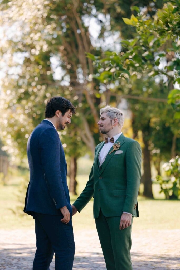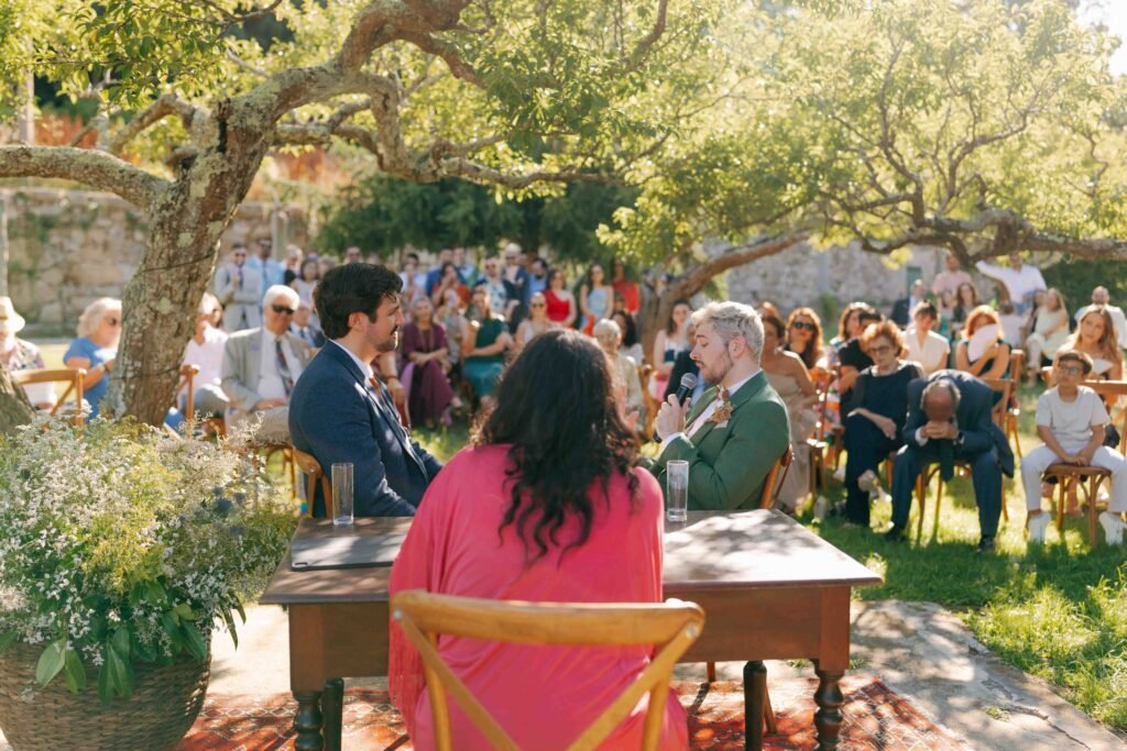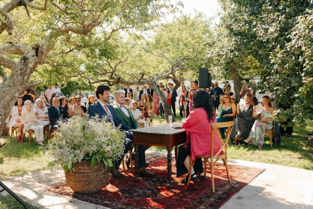 No final de julho, sob a magia de uma noite de verão, João e Lucas celebraram o seu casamento de sonho na Quinta da Pedra Salgada, no Porto. Os convidados chegaram com outfits coloridos que encheram um dia já de si deslumbrante com gargalhadas e aquela alegria leve e descontraída de verão. Ao ar livre, a cerimónia ganhou vida com discursos sentidos e emocionantes, trocados entre o casal e partilhados também pelos seus familiares e amigos. O resto do dia foi passado a jogar jogos tradicionais, com direito a um jantar delicioso e muita, muita dança.